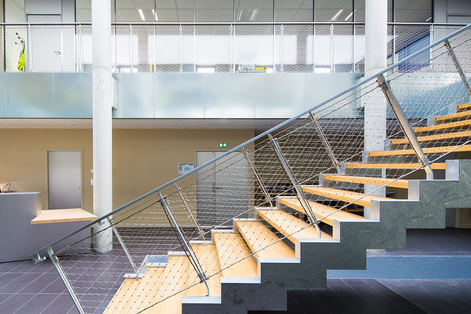 Les ouvrages intérieurs sont réalisés en béton brut, en inox et en bois.